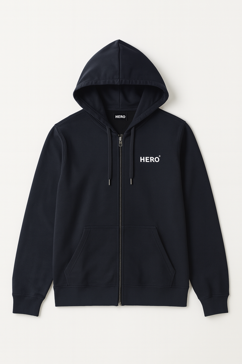 100% cotton zip-up hooded jacket. An essential piece, both fluid and structured. The basic cut emphasizes a relaxed yet sophisticated look, designed for everyday wear and off-duty moments. Its soft, breathable cotton ensures comfort and durability, while the HERO logo on the chest asserts understated elegance. A timeless essential, effortlessly worn.